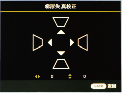 按下 ENTER(确定)按钮显示梯形失真补偿对话框,然后使用选择器(上/下/左/右键)校正梯形失真。