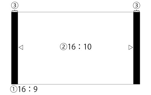 例如,在纵横比为 16:10 的屏幕上显示纵横比为 16:9 的图像。