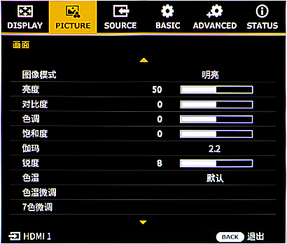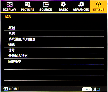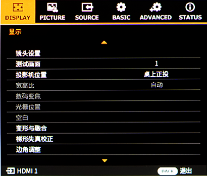 按下投影机或遥控器上的 MENU(菜单)按钮。将显示菜单。