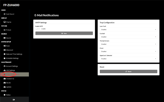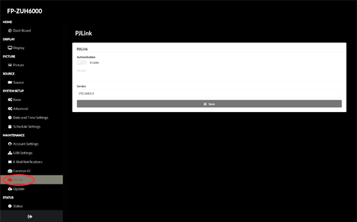 通过导航菜单的 MAINTENANCE(维护)栏目,选择“PJLink™”。