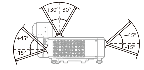 The reception ranges for the projector’s three remote control receivers are as follows: