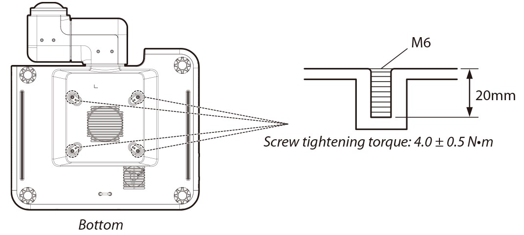 - When suspending the projector from the ceiling, be sure to use the specified ceiling mount.