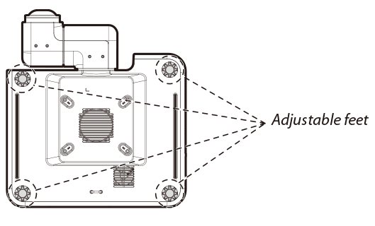 The height of the projector can be adjusted (by about 1.9 cm) using the adjustable feet.