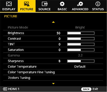 High Speed and HDR are automatically detected from the input signal, and the projector switches to this mode.