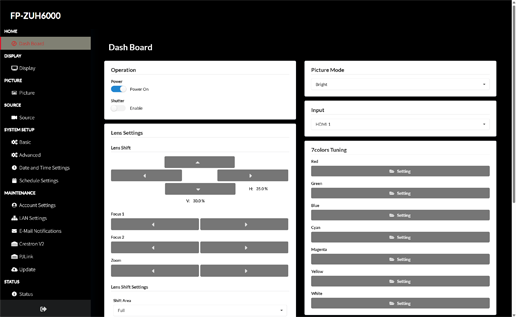 From the navigation menu under MAINTENANCE, select PJLink™.