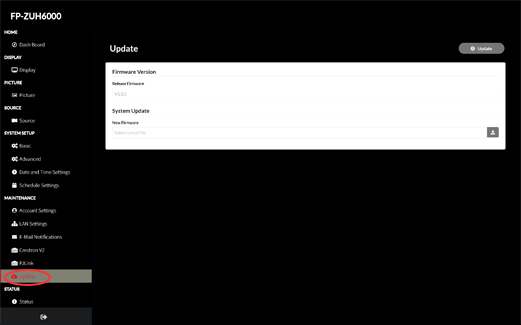 2. Specify the downloaded firmware file, then click the Update button in the upper right corner.
