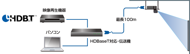 HDBaseTで赤外線を有効にするにはaシステム設定:基本/リモコン受光部でHDBaseTをオンに設定してください。 - 本機は市販のすべてのHDBaseT対応の伝送機器、およびすべての接続環境において動作を保証するものではありません。