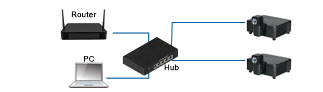 - PC等と接続するケーブルは、市販のクロスケーブルをご利用ください。