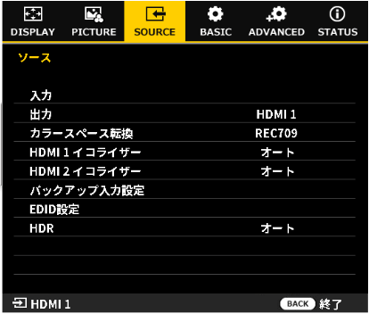オフ | HDR機能をオフにします。オフに設定すると、プロジェクターはHDR信号を表示できません。 |
