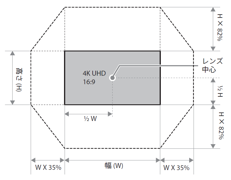レンズシフト範囲と投写距離