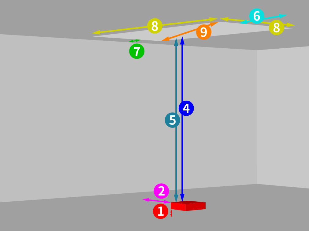 上側軸・右側軸のサイズは「設置面からレンズ中心までの距離」、